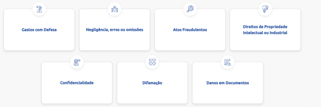 - Reclamações e processos judiciais por prejuízos causados a terceiros;